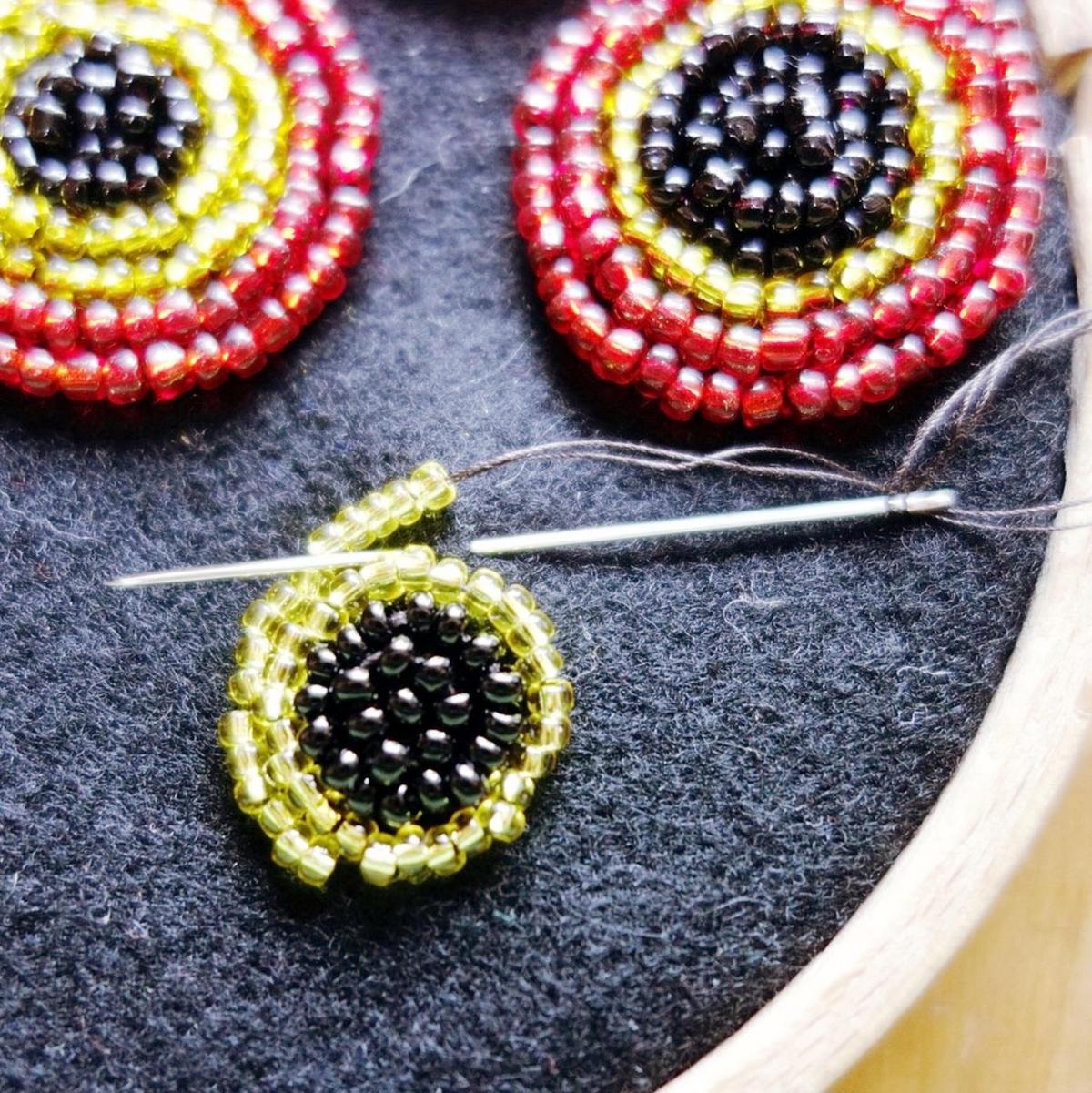 Opettaja tuo valmiita sekä merkattuja pohjia, nro 5 helmilankaa, neulan ja valmistuohjeen. Nämä kuuluvat 10€ erilliseen tarvikepakettiin. Voit ottaa mukaan omat sakset ja muista ihmeessä silmälasit!